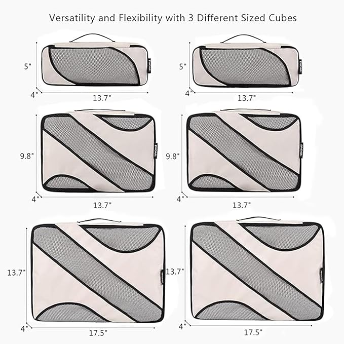 - Multi Functional: The 6 set organizers fit like a glove into regular suitcase; You can choose different cubes to fits your suitcase; That is an ideal way to keep organized for family breaks, business travel, long-distance travel, cruise holidays