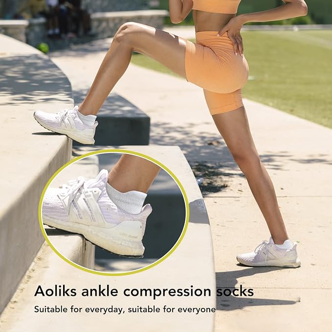 • 🏃COMPRESSION THERAPY - Aoliks Ankle compression socks 8-15 mmHg can help improve circulation by applying pressure to the blood vessels in the ankle region. This can lead to improved blood flow and oxygen delivery to the muscles, which can reduce fatigue and soreness and help in muscle recovery, and plantar fasciitis. Aoliks compression athletic socks are available in 3 sizes, S/M, L/XL, and 2XL, which are providing you with a wider choice of sizes.