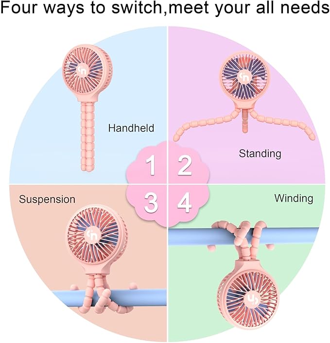 - 【Versatile and Portable】 This portable fan can be used as a desk and handheld fan. It's also a stroller accessory as baby summer essentials. Its flexible tripod allow you to clip it onto strollers, cribs, and car seats for your baby. It is also suitable for various occasions, such as outdoor walks, car trips, baby room and pregnant women in the delivery room.