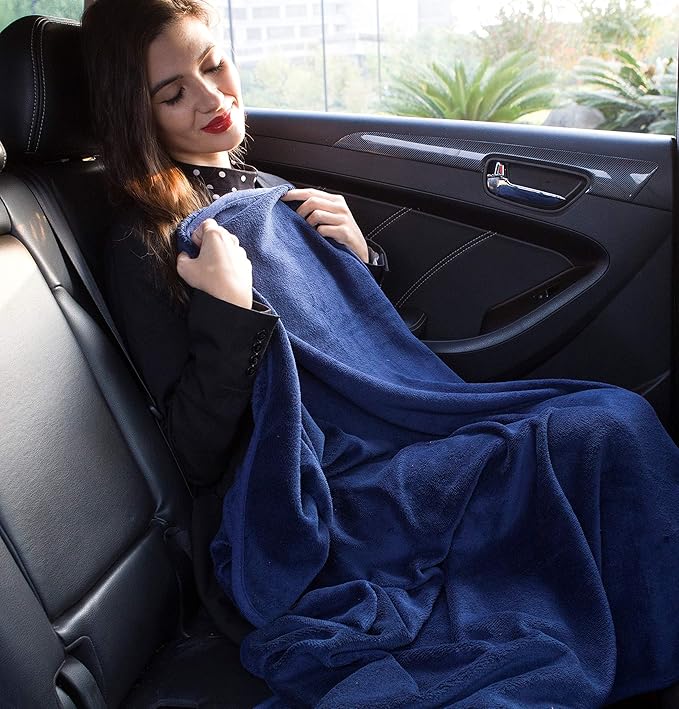 - Special Feature : Big Blanket - A couch throw blanket for the home that is machine washable. It retains its form and does not shrink after multiple washes., Long Flight Essentials: The Navy Blue travel blanket can be used as a 2-in-1, as a pillow or a blanket, for plane travel., Road Trip Essential - Airplane blankets are also offered as a great travel gift, packed with carabiners and hand baggage belts, which can be used on long flights and road trips., Soft Blanket - Stadium blanket with a carabiner for portability can also be used as a car blanket or couch blanket while watching TV or movies., Travel Bag - Both the blanket and the travel bag weigh less than a pound, which is easily portable and can be used as road trip essentials for adults, men, and women Big Blanket - A couch throw blanket for the home that is machine washable. It retains its form and does not shrink after multiple washes., Long Flight Essentials: The Navy… See more