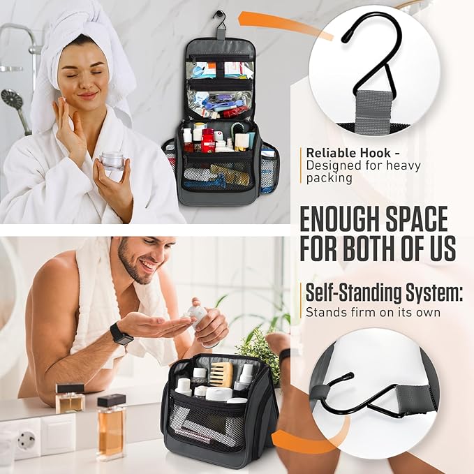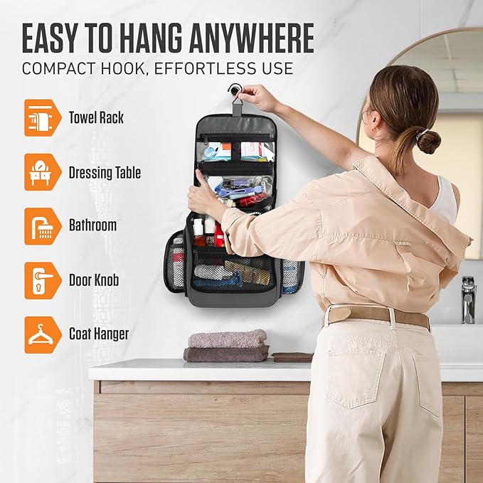 - HOOK & ORGANIZATION – 18 compartments and a versatile hook let you hang it, save space, or stand it upright when needed. Perfect for travel, camping, or at home.