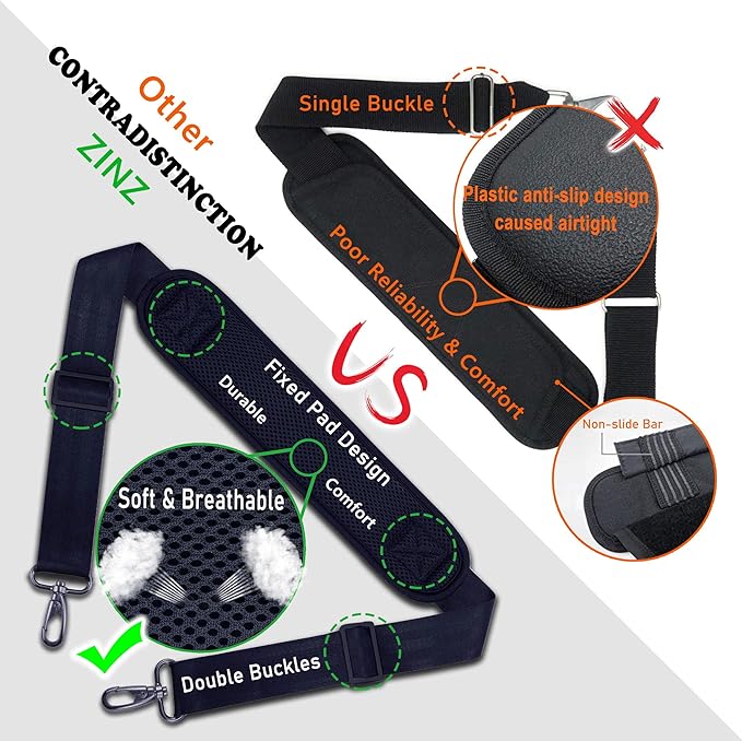 - 1. ABOUT ZINZ BAG SHOULDER STRAP: ZINZ universal bag strap replacement can replace all broken straps of ANY BAG WITH D-RINGS OR EQUIVALENT HARDWARE. Especially for shoulder bag / laptop computer bag / briefcase / messenger bag / duffel bag / diaper bag / tool bag / guitar bag. Professional package, 24hrs after-sale service, 30-DAY MONEY-BACK for ZINZ Shoulder Strap
