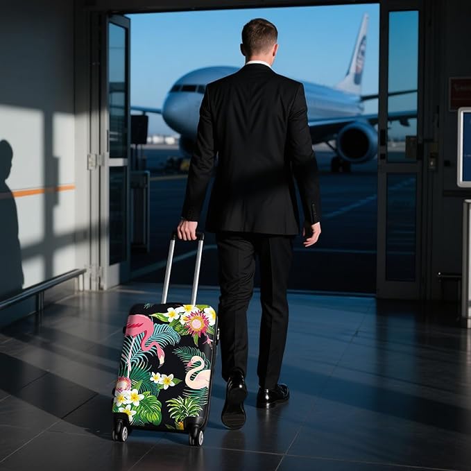 WUJIAONIAO Travel Luggage Cover Baggage Suitcase Cover Protector Skins 18-32 Inch (Flower flamingo, M (for 22-24 inch luggage))