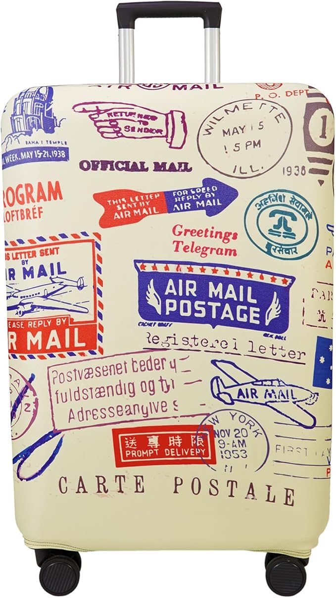 WUJIAONIAO Travel Luggage Cover Baggage Suitcase Cover Protector Skins 18-32 Inch (Stamp pattern A13, M (for 22-24 inch luggage))