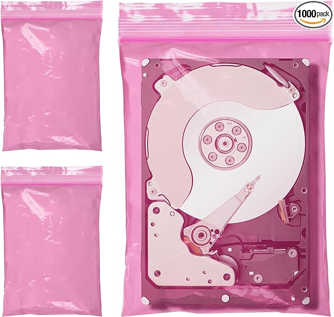 - Affordable Solution. Pink anti-static bags are excellent for protecting sensitive electronic components that require frequent access. These anti static plastic bags safeguard electronics, computer parts, and film.