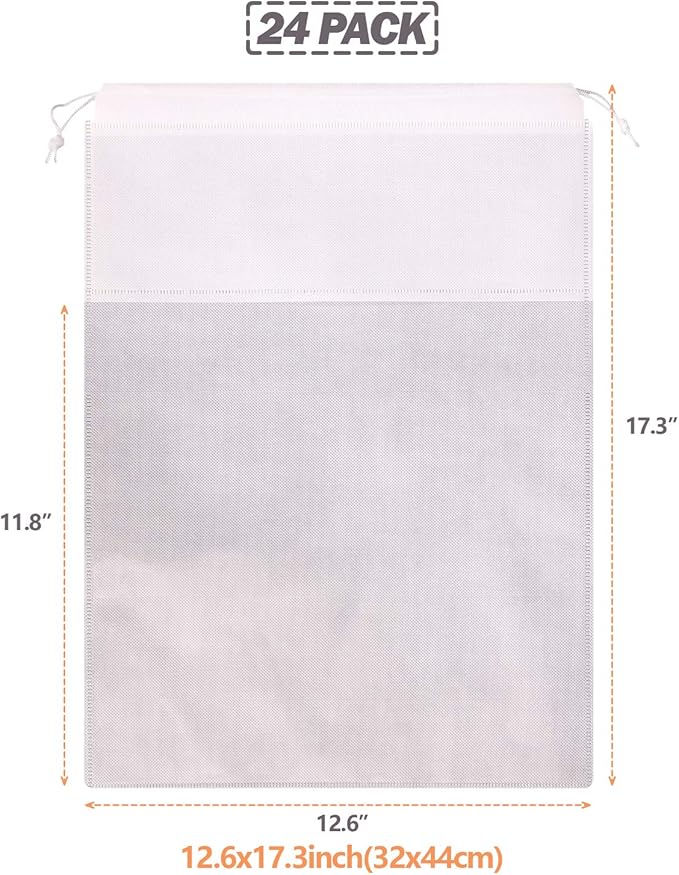 24 Pack Portable Shoe Bags for Travel Large Shoes Pouch Storage Organizer Clear Window with Drawstring for Men and Women White