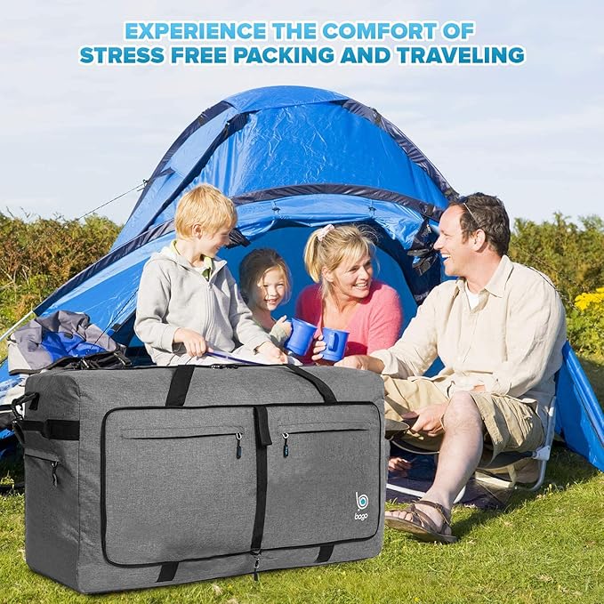 Bago Large Foldable Duffel Bags for Traveling Women & Men - 100L Packable Duffle Bag for Travel with Shoe Compartment - Water Repellant, Heavy Duty, Lightweight Folding & Collapsible (SnowGray)