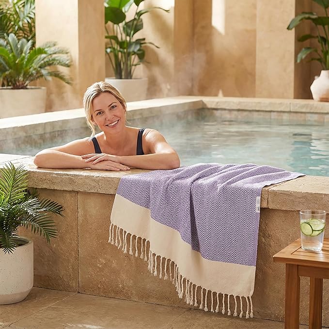 Bazaar Anatolia Turkish Beach Towel 100% Cotton Bath Towels 71x39 Quick Dry Sand Free Lightweight Large Oversized Herringbone Purple