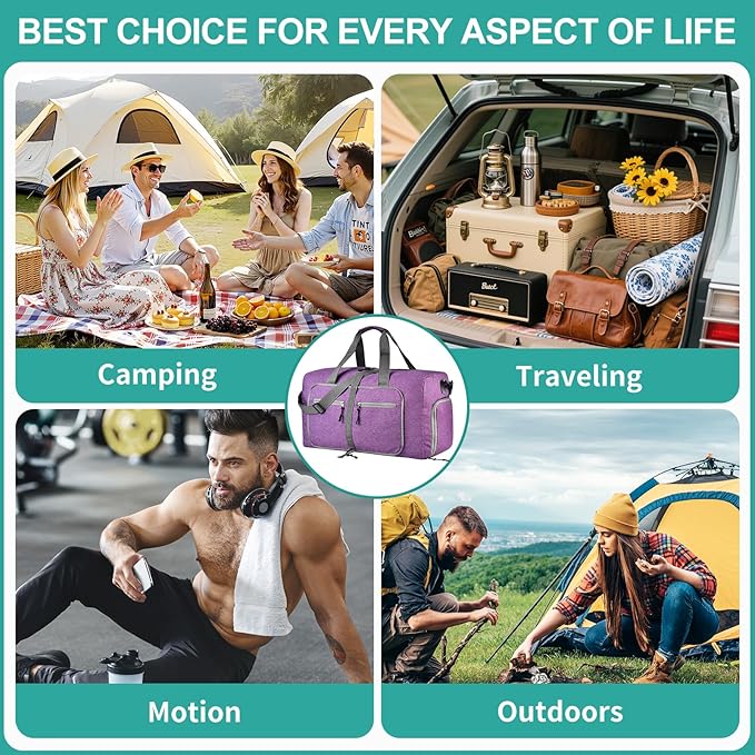 Dimayar 85L Travel Duffle Bag for Men Women - Foldable Duffel Bag with Shoes Compartment - Overnight Bags Waterproof & Tear Resistant(Purple)