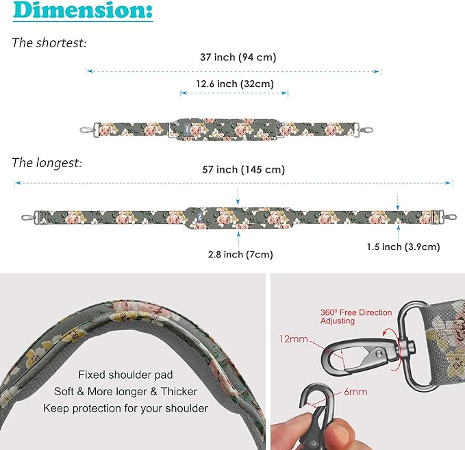 - 3. DUAL BALANCED BUCKLE: Double balanced clasps, let shoulder force more even, MAKE BAGS FEEL 50% LIGHTER; With non-slip design, the DUAL CLASPS ARE STABLE and will not change the length of the shoulder strap on its own due to the weight change of the bag