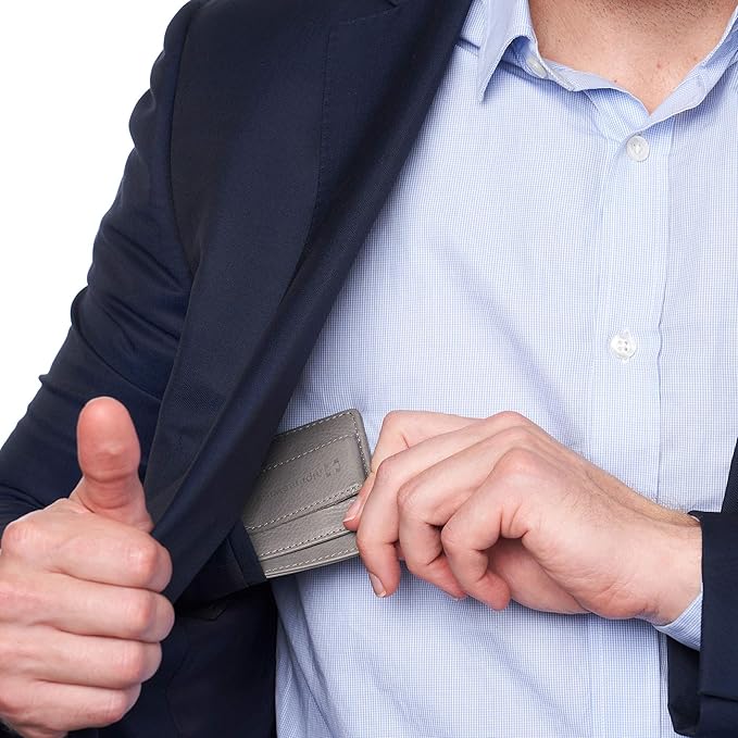 - SPRING-LOADED MONEY CLIP DESIGN: Non-magnetic spring tension clip securely holds 5–15 folded bills and maintains a strong grip over years of use. Compact front pocket wallet eliminates back pocket bulk discomfort. Crafted from genuine premium leather—not synthetic or bonded materials that often pose as real leather—it breaks in over weeks softening for easier card access molding to your pocket and developing a rich handsome patina with use For minimalists who value function over bulk