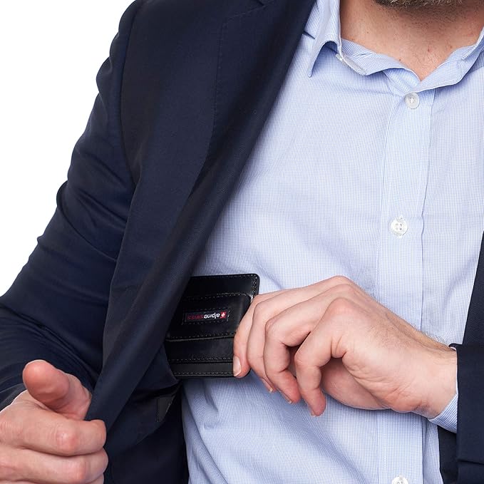 - GIFT BOXED & FRONT POCKET OPTIMIZED - Arrives in elegant Alpine Swiss gift box, perfect for birthdays, Father's Day, or any special occasion. Designed specifically for front pocket carry - provides enhanced security against pickpockets while eliminating the discomfort of sitting on a bulky back pocket wallet. Ideal for business professionals and travelers.