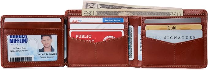 - DESIGNED TO BREAK IN PERFECTLY – The Spencer hybrid wallet is crafted from genuine premium leather—not synthetic or bonded materials that often pose as real leather. Intentionally snug card slots stretch and mold to your cards over 3–4 weeks, creating a custom fit that keeps them secure for years. This slim-profile bifold offers the storage of a trifold, with 14 total pockets and a flip-out ID window with easy thumb access.