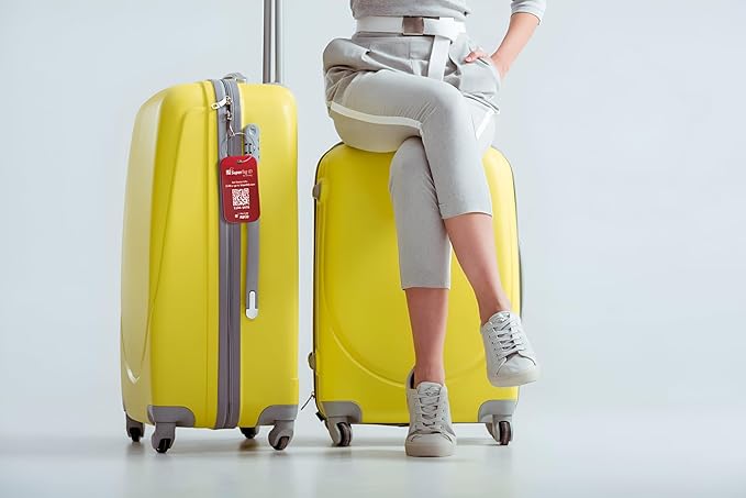 Dynotag® Sentry Series Solid Metal Web Enabled Smart Luggage Tag ID + Steel Loop, Anodized Aluminum with DynoIQ™ & Lifetime Recovery Service (Ruby Red)