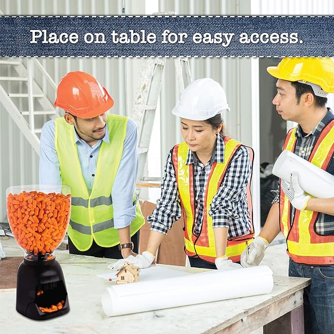 Foam Ear Plugs Dispenser Wall Mount - Bulk Refillable Ear Plugs 500 Pair - High Decibel Industrial Safety Sound Blocking Ear Plugs