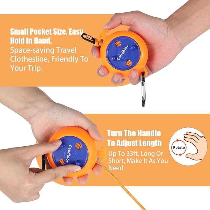 - 4 Adjustable Length- portable clothes drying line can be rotated into a roll, convenient and functional almost anywhere. Working well in camping, hiking, outdoor activity. Also do it on a backpacking travel, cruise, RV, beach, hotel trip, indoor.