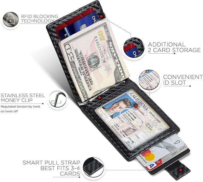 - HOW IT WORKS- At last! A wallet that will meet your everyday needs. The SERMAN BRANDS card holder is equipped with a front pocket made for your most used card. 2 pockets on the inside, with a photo ID slot, and a money clip to hold your cash. Wallet case also has smart pull-strap for quick access to your everyday cards.