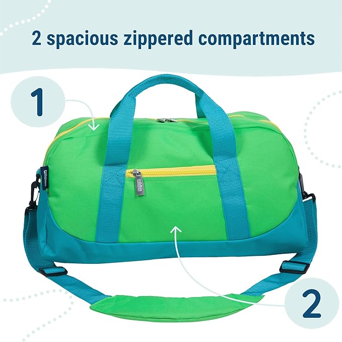 Wildkin Kids Overnighter Duffel Bag – Carry-On Size, Ideal for School & Sleepovers – Monster Green