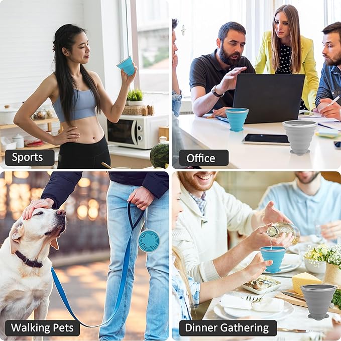 JBER Silicone Collapsible Travel Cup, 4 Pack Silicone Folding Camping Cup with Lids Expandable Drinking Cup Set BPA Free Reusable Portable Graduated for Outdoor Hiking Travel