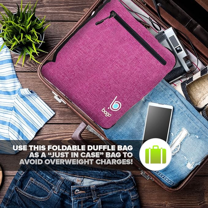 Bago Large Foldable Duffel Bags for Traveling Women & Men - 80L Packable Duffle Bag for Travel with Shoe Compartment - Water Repellant, Heavy Duty, Lightweight Folding & Collapsible (SnowPink)