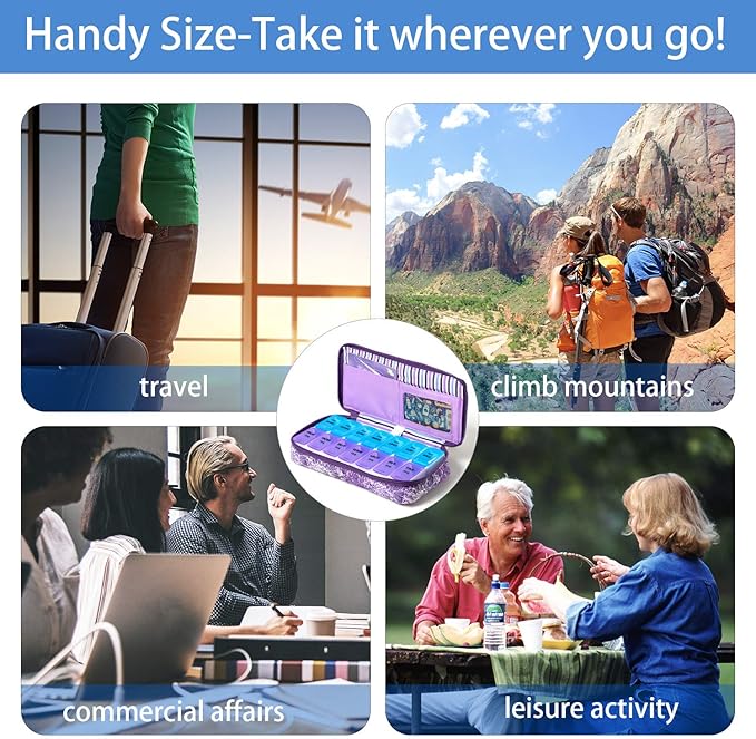 - 【Quality Materials】Pill box 7 day with removable larger compartments design, Made of food-grade PP plastic and safe for medical organize use, keeps you meds organized and intact.