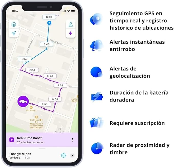 - THEFT PREVENTION - Suspicious movement alerts, virtual zones with entry/exit alerts, be notified immediately on your smartphone in the event of attempted theft. Maximizing the chances of recovery.
