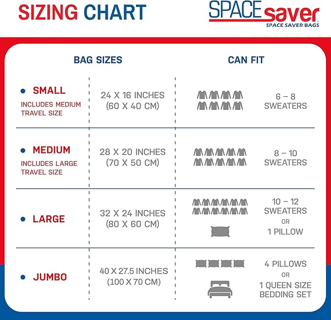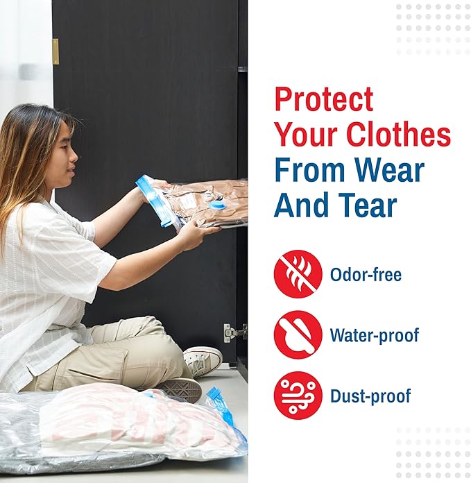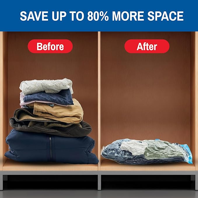 - Save Up to 80% Space: These vacuum seal space saver bags are perfect for compressing comforters, large blankets, duvets, and clothing. Ideal for maximizing storage in your closet, luggage, or basement.
