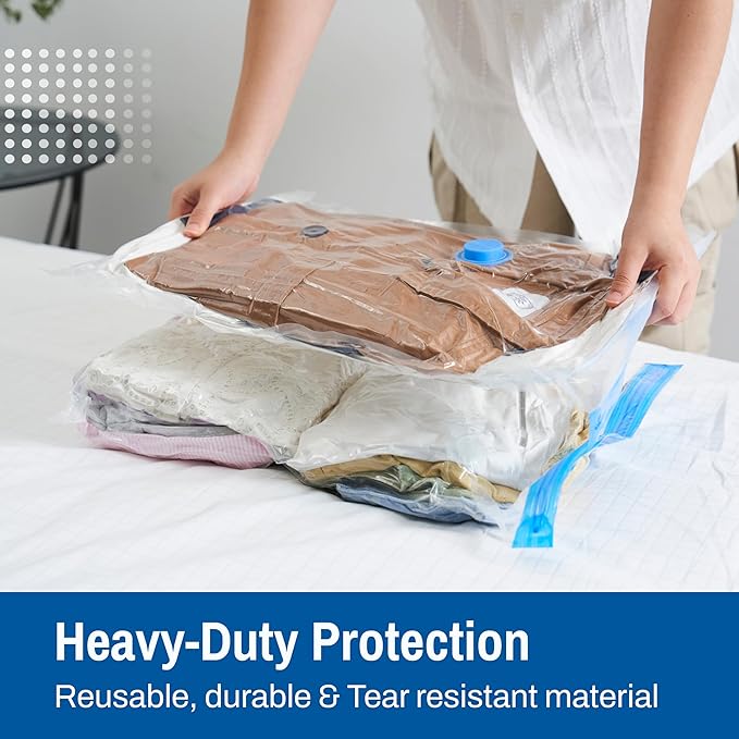 - Heavy-Duty & Reusable: Crafted from thick, durable PA+PE material, these vacuum seal storage bags are rip-resistant and designed for multiple uses - great for moving supplies or long-term bedding storage.