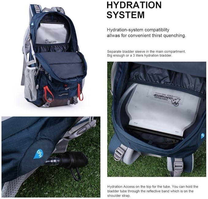 - Perfect Design: There is a compartment in the main bag of the backpack for a water bladder, so that you can have sufficient water when hiking outdoors (WATER BLADDER NOT INCLUDED).