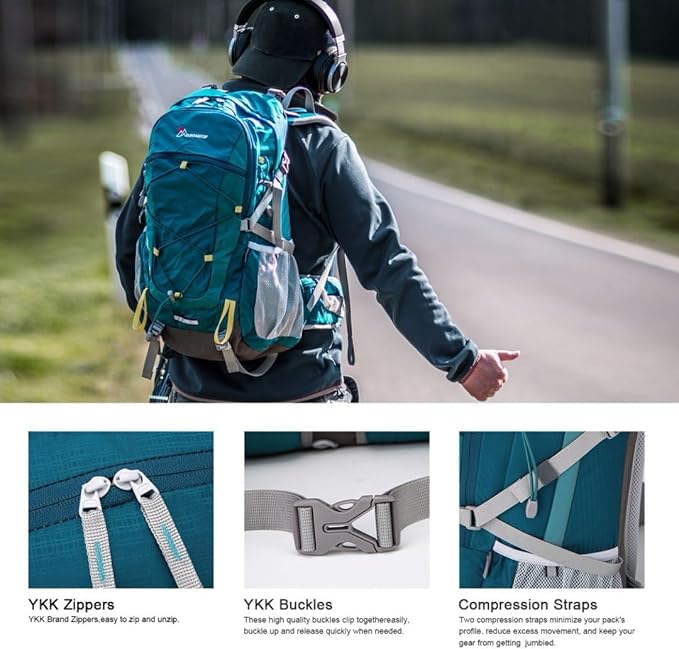 - Durable & Water Repellent: This hiking backpack is made of water repellent 400D polyester fabric, and the YKK zipper is smooth and not easy to fall off.