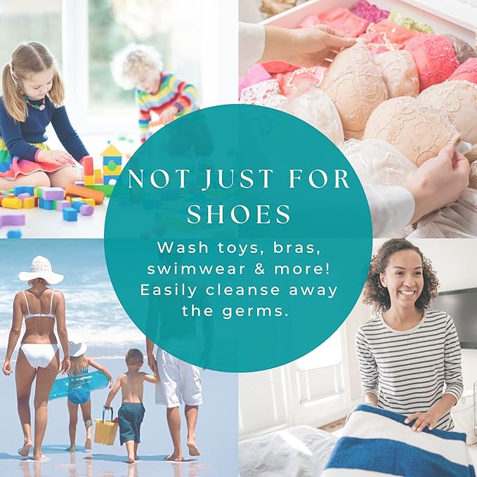 - DEEP CLEAN WITH 360° WATER FLOW - Breathable mesh allows detergent and water to penetrate evenly for a thorough clean — while keeping soles and uppers fully protected.
