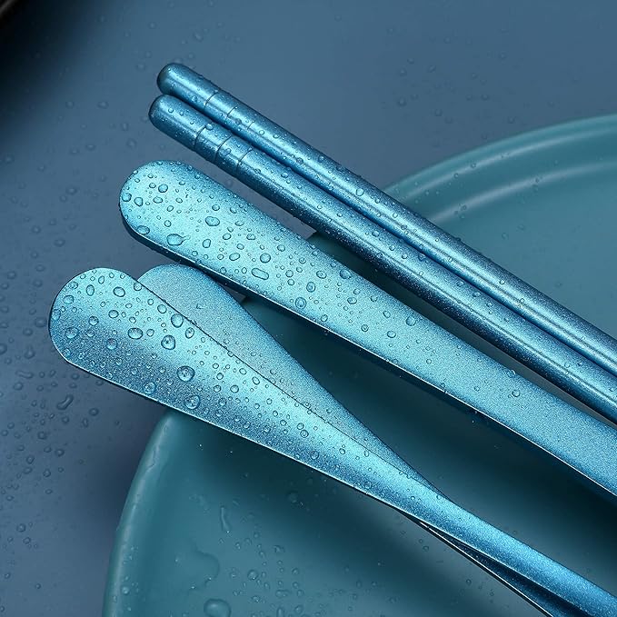 Portable Stainless Steel Flatware Set, Travel Camping Cutlery Set, Portable Utensil Travel Silverware Dinnerware Set with a Waterproof Case (Light Blue)
