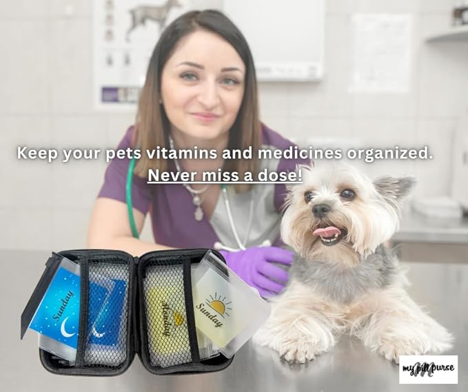 - 7 DAY PILL ORGANIZER: The My Pill Purse is not your regular twice a day pill organizer. Pre Labled with days of the week. Perfect travel pill organizer for day & night. Black cute pill box holds 7 AM & 7 PM pill bags for medicine small enough to use this pill case for purse. Easy to open this pill organizer 2 times a day , the bags are quiet when opening. Pill pouches are not considered 100 percent water or airtight. Although have a zip locking slide closure secure in zipper pill case.