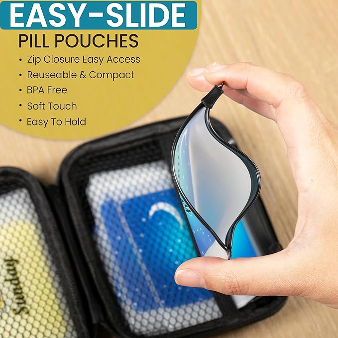 - Weekly Pill Organizer 2 Times A Day: Do you catch yourself wondering if you already took the day’s medication? The perfect day and night organizer. Our reusable pouch set travel size medicine organizer can be used twice a day and pill pouches are food grade plastic and will keep you organized. Just fill the pill planner once a week and you are set. Grab the labeled day of the week, am pm small pill pouch for the day or night from the pill boxes organizers and you know you are good for that time.