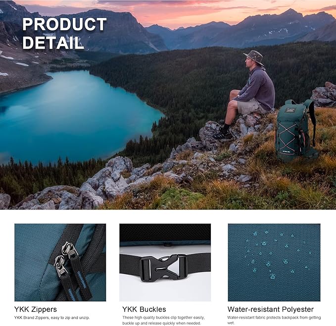 - 【Durable Material】: This 35L hiking backpack is made of durable polyester and is easy to maintain. The zippers and buckles are all YKK, which is smooth and not easy to fall off.