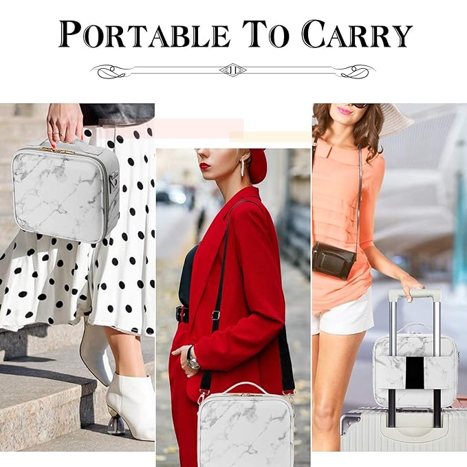 - Versatile & Portable Design:Equipped with a shoulder strap, this makeup case can be worn cross-body, over the shoulder, or attached to a trolley case. The portable carry handle makes it easy to lift or hang, ideal for both indoor and outdoor use.