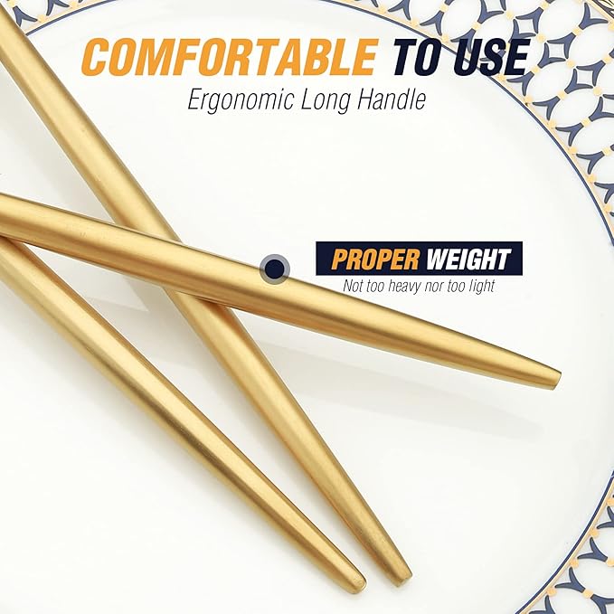 - 【Mulit-application】This gold silverware set is not only suitable for everyday family dining but also perfect for weddings, parties, holiday gatherings, and other special occasions. Whether for personal use or as a gift, it is an elegant and practical choice.