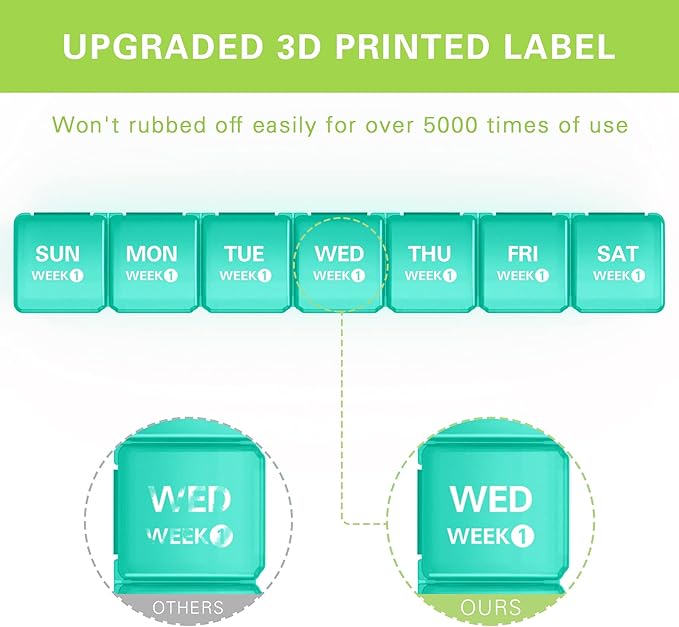 - High-quality Printing - Our medication organizer Adopts high-end silk printing technology,ensure the labels can last for a long time