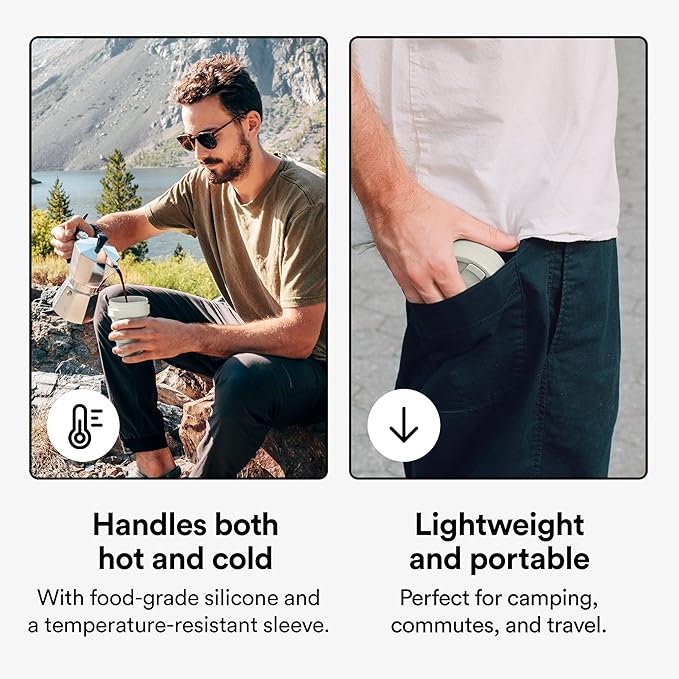 - Handles both hot & cold: Whether it’s hot tea or iced lattes, Stojo’s food-grade premium silicone and temperature-resistant sleeve can handle it all.