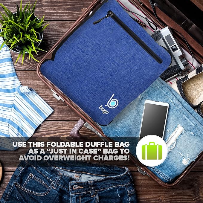 Bago Foldable Duffel Bags for Traveling Women & Men - 60L Medium Packable Duffle Bag for Travel with Shoe Compartment - Water Repellant, Heavy Duty, Lightweight Folding & Collapsible (SnowDepBlue)