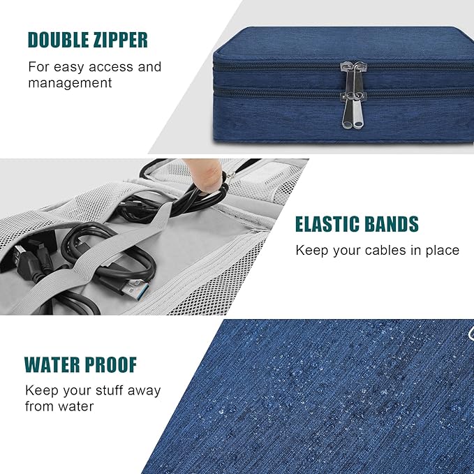 - DIMENSION: 11.02" x 8.27" x 3.94"; This travel electronic pouch is made of heavy-duty, durable and water-resistant nylon. fabric, easy to clean. Two-way zipper closure ensure your item secure.