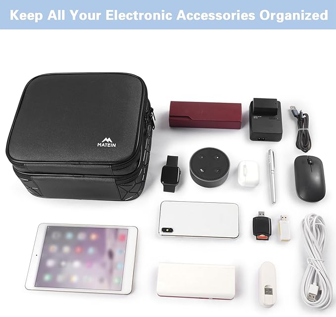 MATEIN Cable Organizer Bag, Waterproof Travel Electronic Storage, Shockproof Portable Double Layer Tech Bags Carrying Case for Cord, Earbuds, Charger, SD Card, DJ Gifts, Black