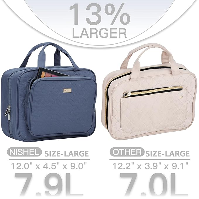 NISHEL Travel Toiletry Bag for Women Large Capacity, Makeup Essentials Organizer, Hanging Case for Accessories, Cosmetics, Aegean-Blue