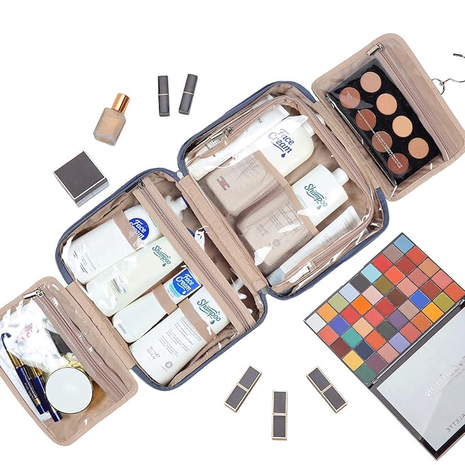 - MULTIFUNCTIONAL COMPARTMENTS - Fully open with a transparent design that gives you a comprehensive glimpse of your stuff. Four different compartments keep your toiletries in place, and a front zipper pocket provides additional storage with convenience