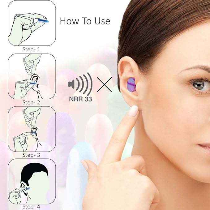 - Maximum Noise Reduction – 33dB NRR These soft foam earplugs deliver strong noise suppression for deep sleep, focus, and protection in loud environments including concerts, construction sites, factories, and travel.