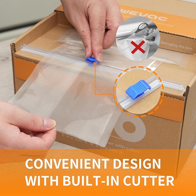 Wevac 8” x 150’ Food Vacuum Seal Roll Keeper with Cutter, Ideal Vacuum Sealer Bags for Food Saver, BPA Free, Commercial Grade, Great for Storage, Meal prep and Sous Vide (8" x 150')