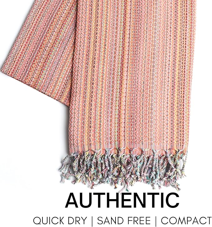 - π Versatile and Multipurpose: Experience the versatility of our beach towel. It serves as a beach blanket, Turkish towel, and camping essential. It's also oversized, providing ample coverage for your comfort.