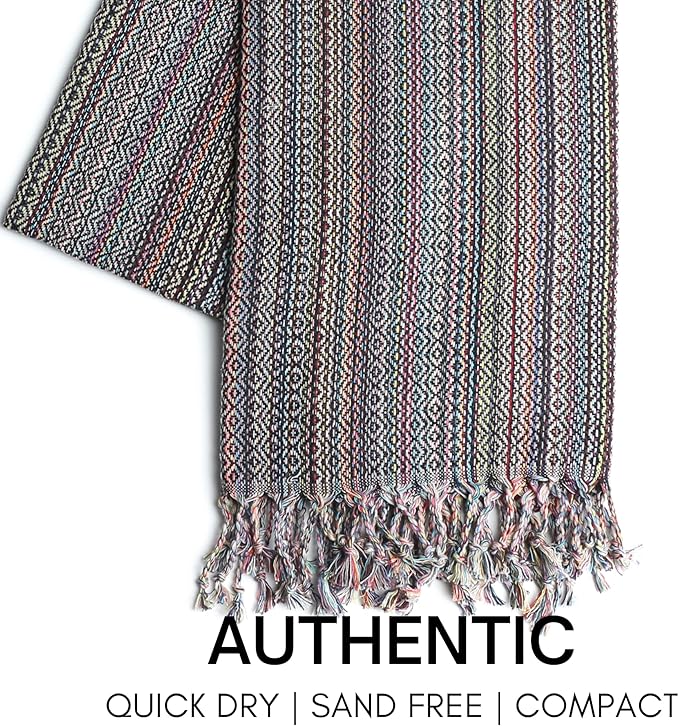 - π Versatile and Multipurpose: Experience the versatility of our beach towel. It serves as a beach blanket, Turkish towel, and camping essential. It's also oversized, providing ample coverage for your comfort.