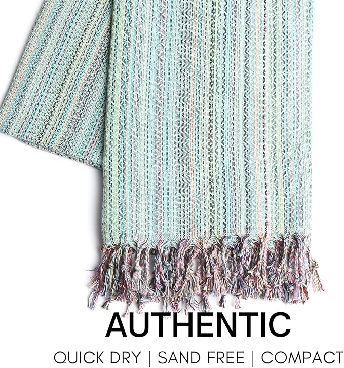 - π Versatile and Multipurpose: Experience the versatility of our beach towel. It serves as a beach blanket, Turkish towel, and camping essential. It's also oversized, providing ample coverage for your comfort.