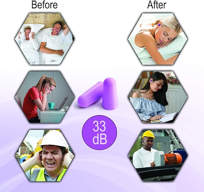 MOLDEX Soft Foam Earplugs Softies® Ear Plugs for Sleeping, Snoring, Work, Travel, Shooting -33dB Highest NRR Made in USA (Purple, 50 Pairs)